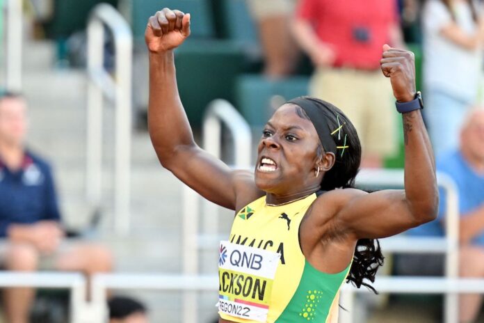 But there was no Jamaican clean sweep, as there had been in the blue riband event, as defending champion Dina Asher-Smith of Britain claimed bronze in 22.02sec.