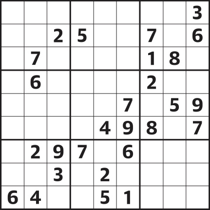 Fill the grid so that every row, every column and every 3×3 box contains the numbers 1 to 9.