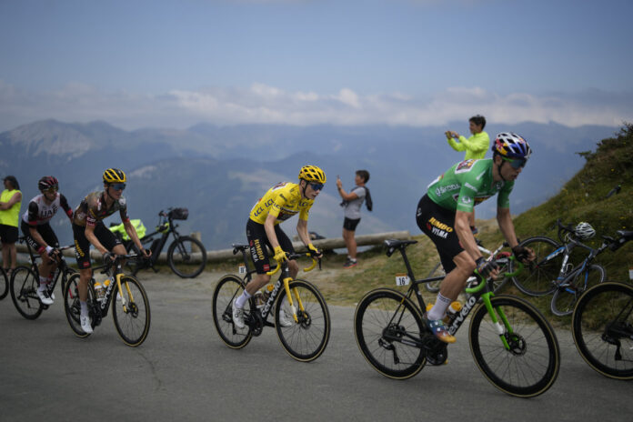 Saturday’s time-trial was won by Wout van Aert ahead of his Danish teammate Vingegaard, meaning Jumbo have six stage wins, the yellow jersey, the green sprint jersey and the polka dot mountains jersey.